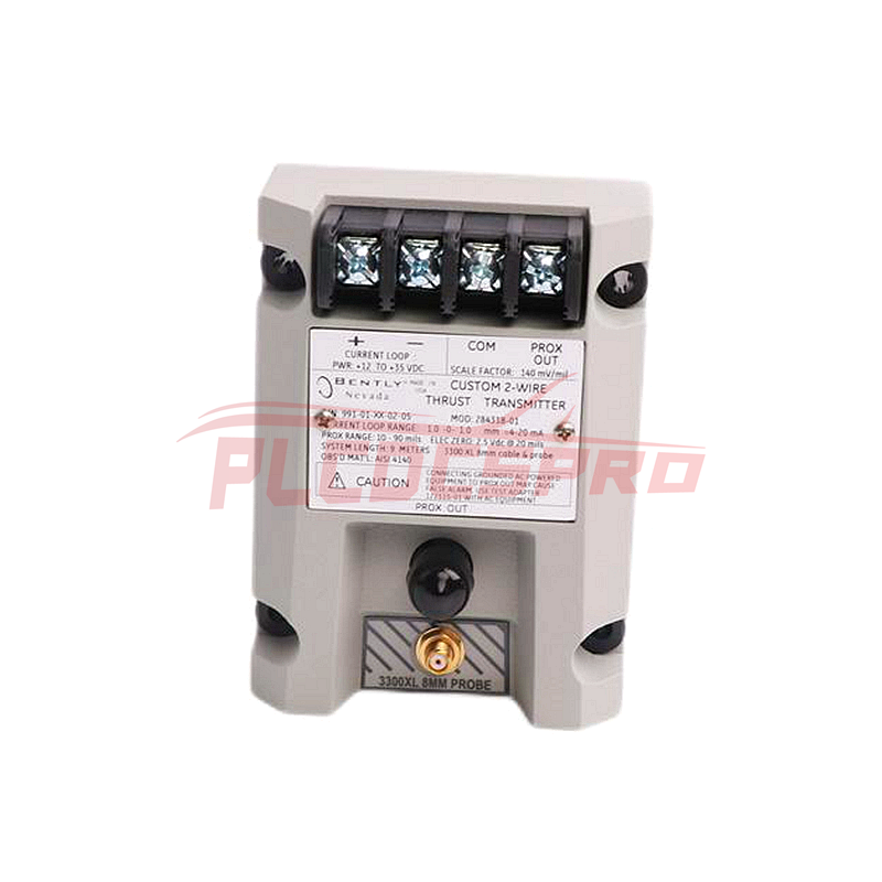 The Bently Nevada 991-25-XX-01-CN is a thrust transmitter designed for OEMs of centrifugal air compressors, small pumps, motors, and fans. It converts axial displacement (thrust) into a 4-20 mA output signal for integration into machinery control systems.